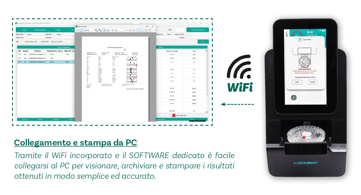 - Test multiparametrico: fino a 23 parametri tra cui biochimica, elettroliti, gas nel sangue.